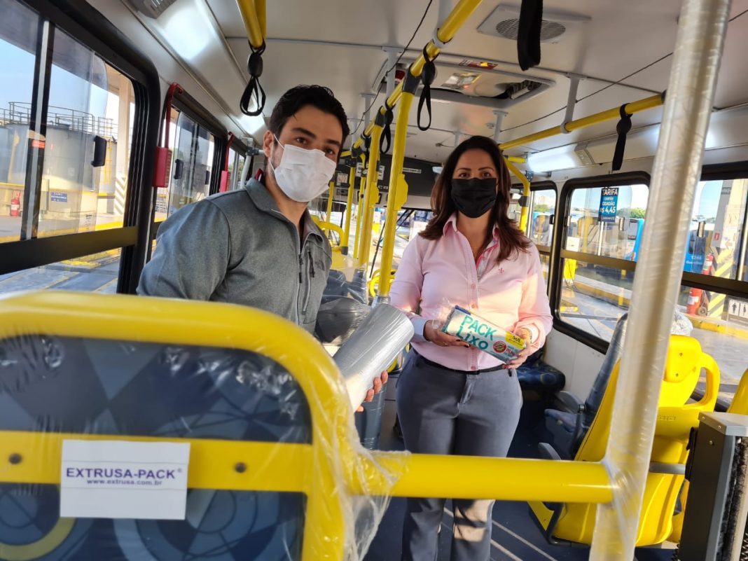 Inspirados em ações realizadas por grandes marcas no País que impactaram a sociedade no combate à covid-19, os diretores da Extrusa Pack também queriam fazer algo para a sociedade. “Tínhamos o desejo de contribuir de alguma forma com o enfrentamento à pandemia, e como fabricamos os sacos para lixo com esta importante tecnologia só precisamos ajustar a fábrica e os equipamentos para produzir a película protetora ao contato. Sabendo da importância que o prefeito Guti tem dado ao enfrentamento do vírus, decidimos doar e aplicar os filmes. Os mais de 400 mil usuários passam a ter uma proteção extra no transporte público”, disse Gisele Barbin, gerente comercial da Extrusa.