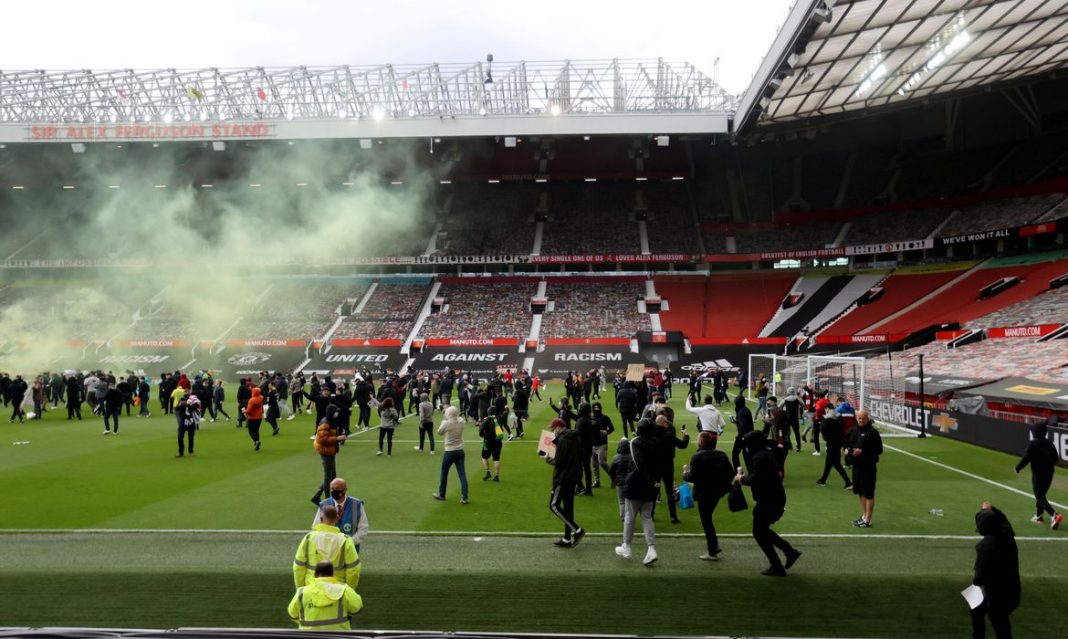 A partida entre Manchester United e Liverpool, programada para acontecer neste domingo (2) pelo Campeonato Inglês, foi adiada após torcedores dos Diabos Vermelhos invadirem o campo do estádio de Old Trafford em protesto contra os proprietários do clube, a família Glazer.