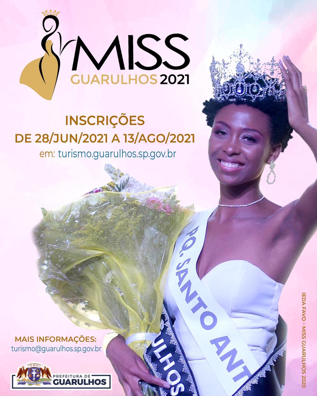 A Prefeitura de Guarulhos abriu as inscrições para o concurso Miss Guarulhos 2021, que podem ser realizadas gratuitamente até o dia 13 de agosto pelo site turismo.guarulhos.sp.gov.br.