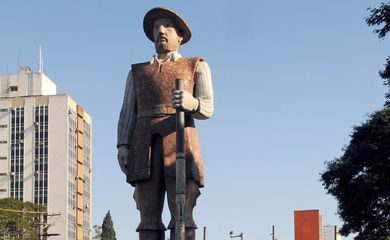 Com 10 metros de altura, além da base de três metros, e 20 toneladas, a estátua retratando o bandeirante Borba Gato foi inaugurada em 1963, como parte das comemorações do centenário de Santo Amaro. A escultura foi desenhada e executada pelo artista Júlio Guerra (morto em 2001). O monumento já havia sido alvo de pichações em outras ocasiões por grupos que questionam a homenagem a figura do bandeirante.
