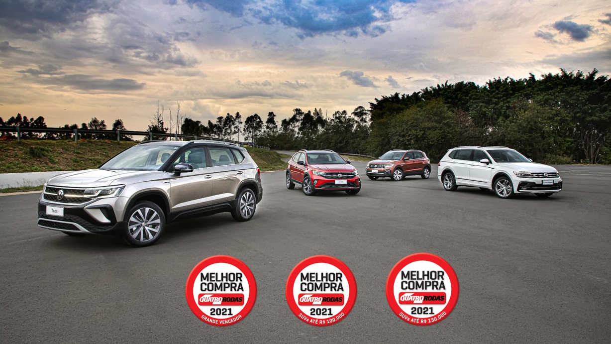 Além de vencer o prêmio ‘Melhor Compra 2021’ com o Taos, a família SUVW conquistou as categorias ‘SUVs até R$ 100 mil’ com o Nivus Comfortline 200 TSI; ‘SUVs até R$ 130 mil’ com o T-Cross Comfortline 200 TSI; ‘SUVs até R$ 160 mil’ com o Taos Comfortline 250 TSI; e ‘SUVs até R$ 200 mil’ com o Taos Highline 250 TSI.