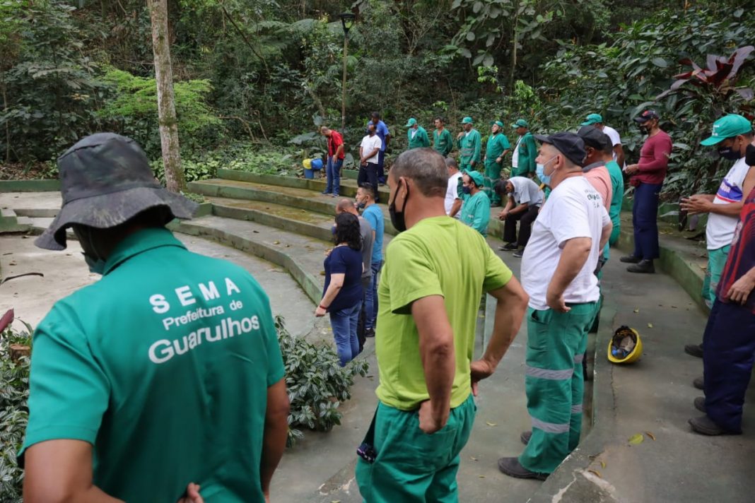 Servidores do setor de poda da Secretaria de Meio Ambiente (Sema) de Guarulhos, cerca de 40 pessoas entre operadores e auxiliares, participaram nesta terça-feira (14) de aula sobre aperfeiçoamento e reciclagem das operações, realizada no Espaço Gilmar Lopes, área interna do Bosque Maia.