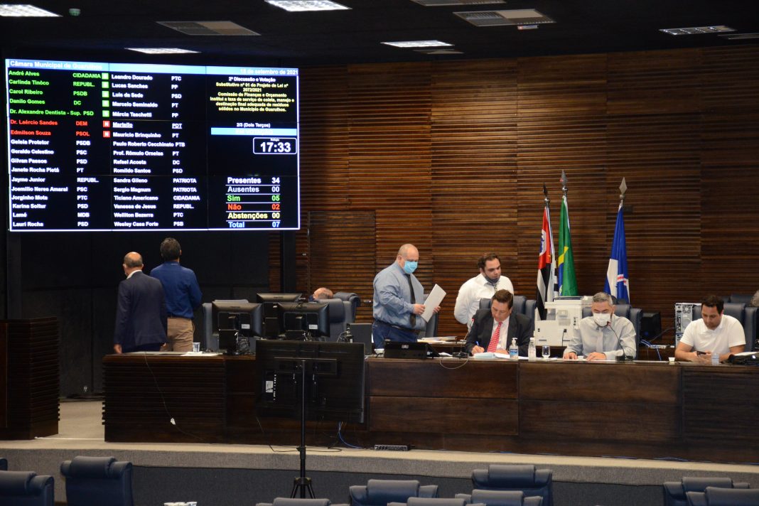 Os vereadores da Câmara de Guarulhos votaram o projeto de criação da Taxa de Resíduos Sólidos, mais conhecida como “Taxa do Lixo”, nesta quarta-feira, 15 de setembro. A aprovação em 1ª e 2ª discussões, contou com 26 votos favoráveis e oito contrários, durante a 47ª e 48ª Sessões Extraordinárias. Houve amplo debate durante a votação do Substitutivo nº 1 ao PL 2072/2021, de autoria da Prefeitura.