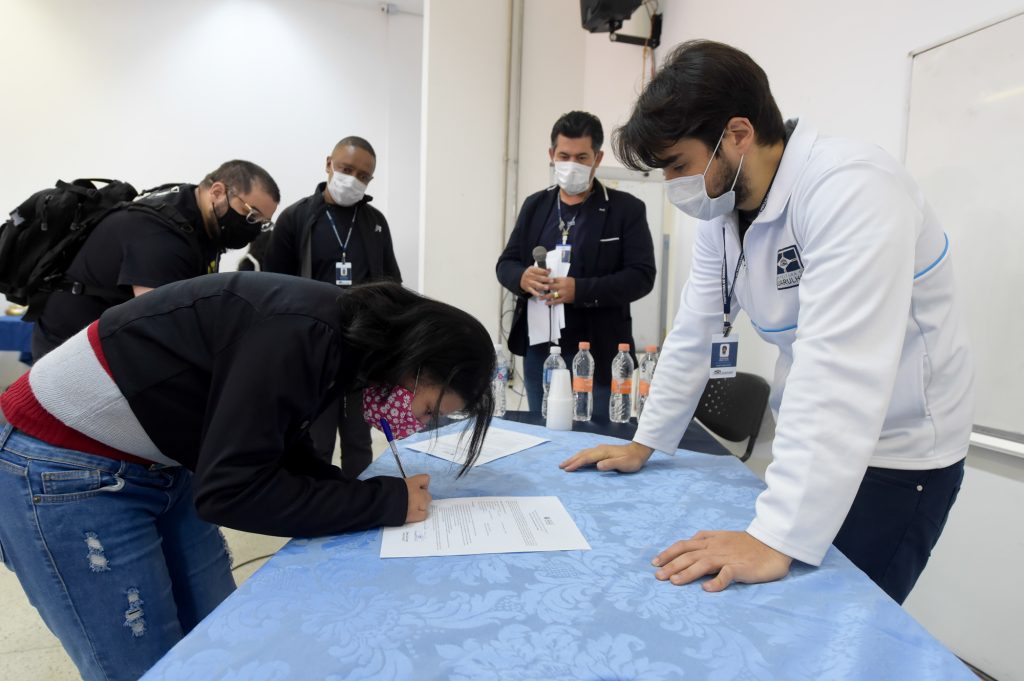 Os auditórios sete e oito do Adamastor Centro receberam na manhã desta sexta-feira (17) a aula inaugural e a assinatura dos termos de adesão ao Bolsa Trabalho, programa emergencial de auxílio-desemprego com qualificação profissional. A iniciativa é uma parceria da Secretaria do Trabalho de Guarulhos com o governo do Estado de São Paulo.