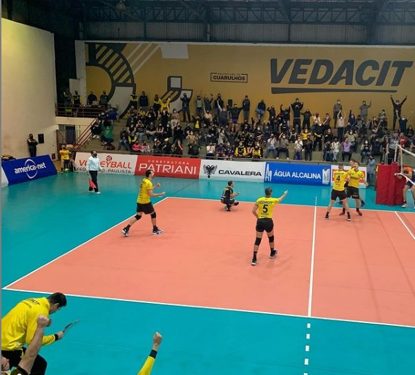O ginásio da Ponte Grande foi palco da vitória do Vôlei Guarulhos no primeiro jogo da semifinal do campeonato paulista de vôlei masculino e também do retorno da torcida nesta terça-feira (5). No ritmo das batidas e gritos de apoio, os guarulhenses venceram São José por 3 sets a 1(25/18, 13/25, 25/21 e 25/22).