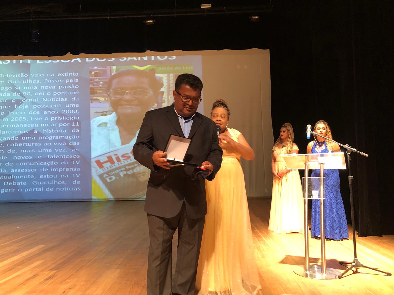 O diretor do portal Guarulhos em Destaque, Geraldo Júnior, recebeu o prêmio Abdias do Nascimento como uma das personalidades negras da cidade que realizam um trabalho relevante. A cerimônia desta quarta-feira (3) aconteceu no Teatro Adamastor Centro.