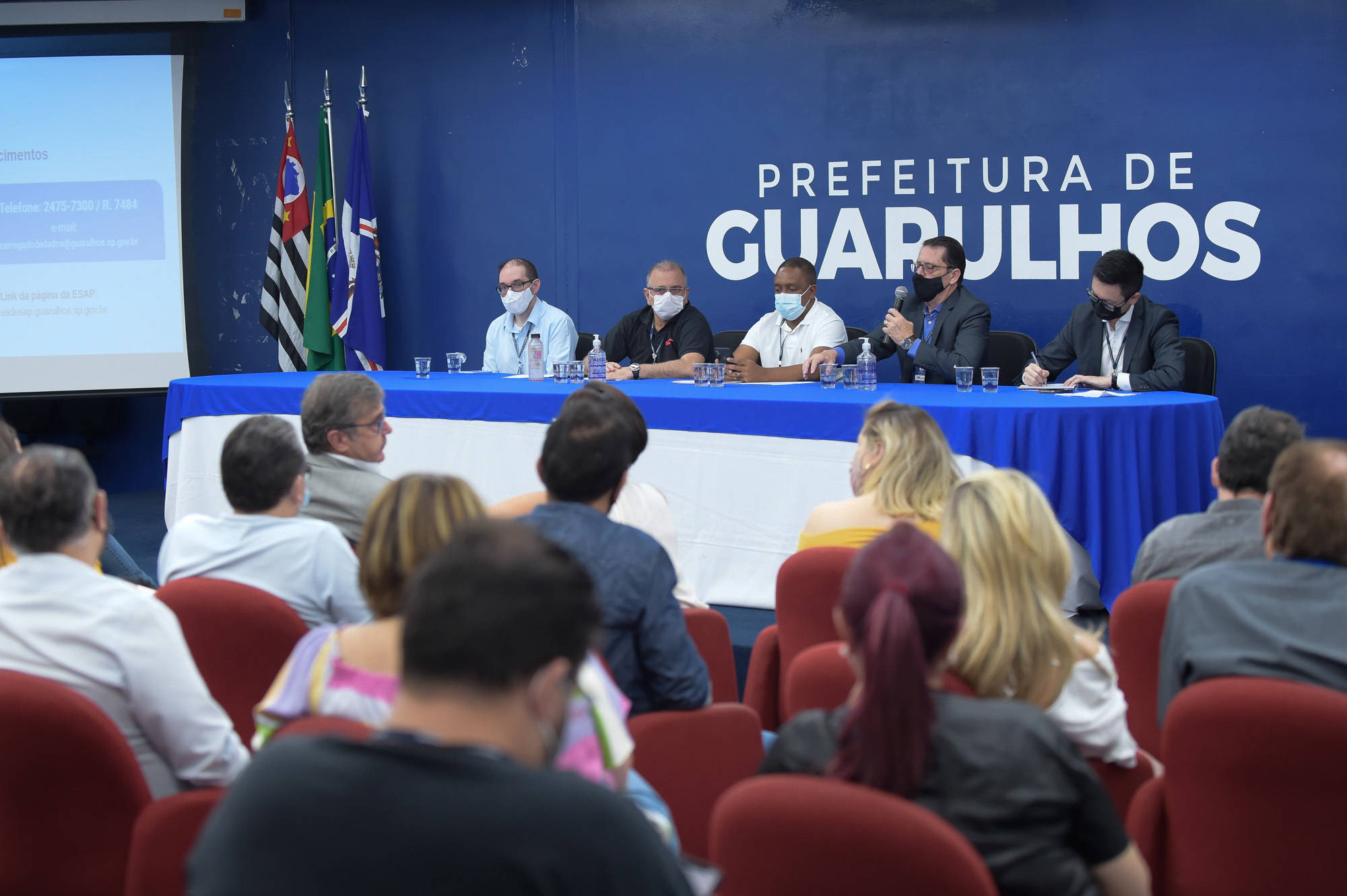 O auditório do Paço Municipal sediou na manhã desta quarta-feira (17) uma apresentação sobre a Lei Geral de Proteção de Dados (LGPD) para secretários da Prefeitura de Guarulhos. O evento teve o objetivo de atualizar a administração sobre os avanços nas adequações à lei, além de reforçar a necessidade de cada departamento alinhar as ações para o cumprimento do que é determinado pela legislação.