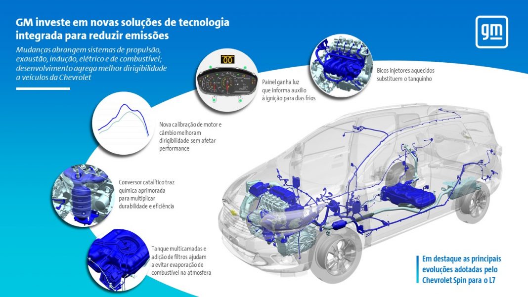 Para o Proconve L7, a empresa investiu desde pesquisa e desenvolvimento de produto e até na atualização da linha de montagem, já que há mudanças importantes em sistemas de veículos, como o de exaustão e o de armazenamento e distribuição de combustível. Outra alteração está na inteligência do software que gerencia motor e câmbio. Modelos da linha Chevrolet estão adotando inclusive tecnologias que serão requeridas apenas em fases futuras do programa, como o sistema que controla e reduz a emissão de vapores tóxicos do tanque durante o processo de abastecimento.