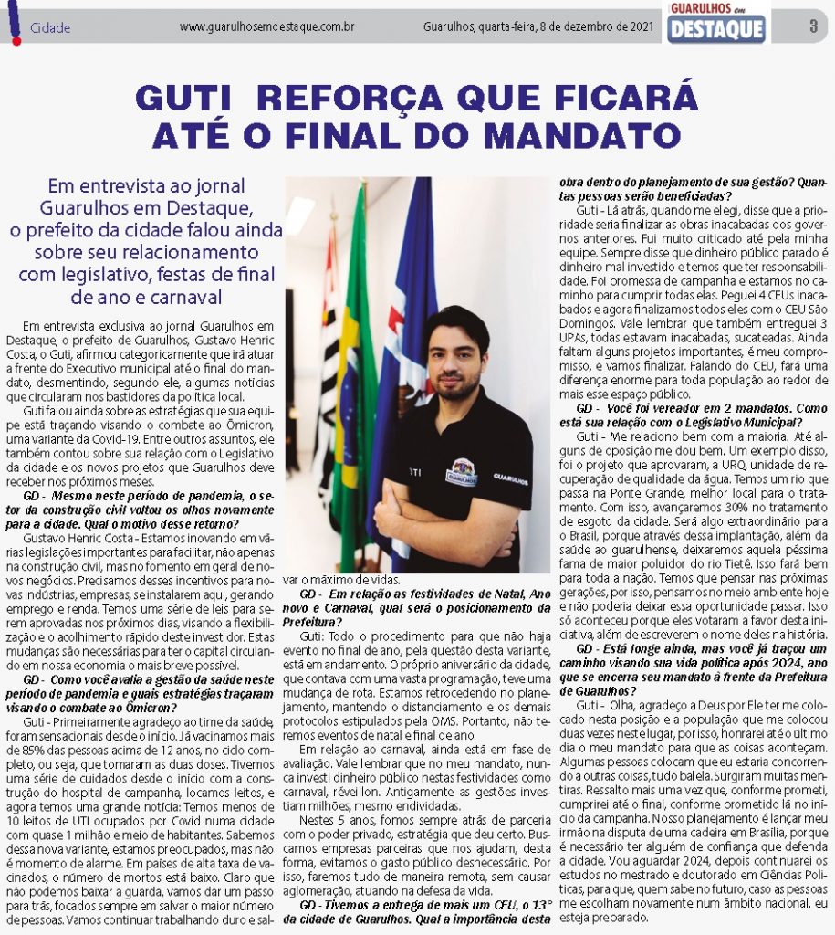 “Cumprirei o mandato até o fim, conforme prometido lá no início da campanha” dezembro 8, 2021 Atualizado: dezembro 8, 2021 Compartilhar WhatsAppFacebookTwitterLinkedin Compartilhar WhatsAppFacebookTwitterLinkedin Em alta Cidade Consumo de álcool durante tratamento psiquiátrico pode oferecer risco à saúde fevereiro 16, 2026 Cidade Obesidade infantil causa danos vasculares precoces, indica estudo com crianças paulistas fevereiro 16, 2026 Esporte Jogos de Inverno: Brasil encerra campanha histórica no esqui alpino fevereiro 16, 2026 Esporte Com João Fonseca, brasileiros disputam chaves principais do Rio Open fevereiro 16, 2026 Notícias relacionadas Cidade Consumo de álcool durante tratamento psiquiátrico pode oferecer risco à saúde fevereiro 16, 2026 Cidade Obesidade infantil causa danos vasculares precoces, indica estudo com crianças paulistas fevereiro 16, 2026 Esporte Jogos de Inverno: Brasil encerra campanha histórica no esqui alpino fevereiro 16, 2026 Esporte Com João Fonseca, brasileiros disputam chaves principais do Rio Open fevereiro 16, 2026