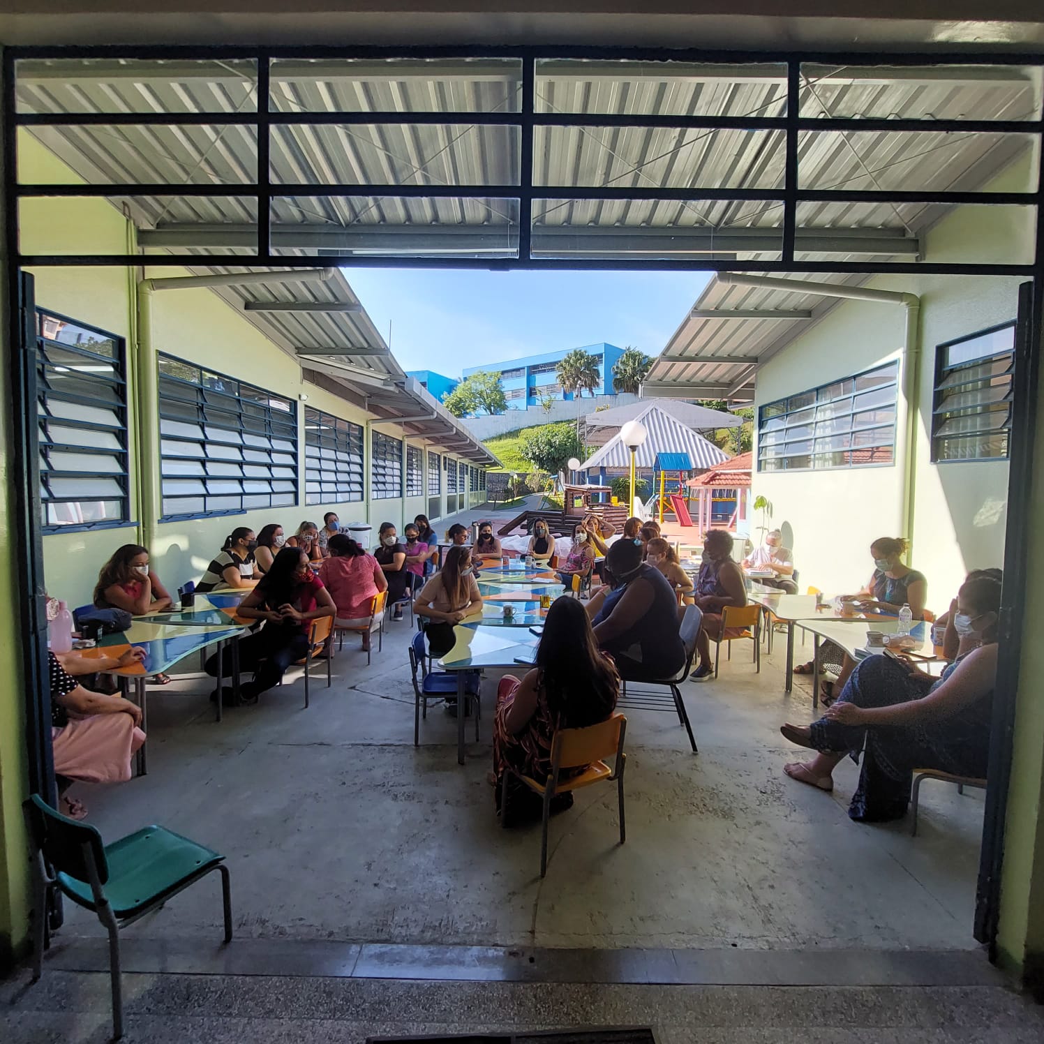 O encontro da escola Pagu foi pautado no desenvolvimento integral dos educandos, experiências, saberes e ações planejadas intencionalmente que favorecem as aprendizagens por meio do brincar e das interações, incentivando a exploração, a pesquisa e as descobertas.