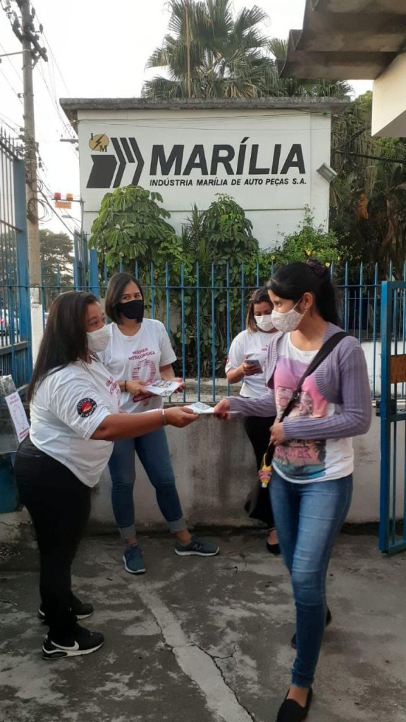 Atividades – As iniciativas incluem ações em portas de fábrica, lives, entrega de boletim e outras. A primeira atividade ocorreu na indústria Marília, terça (8), Dia Internacional da Mulher. Nesta semana, as diretoras ainda visitarão Dyna, Bristol e Continental.