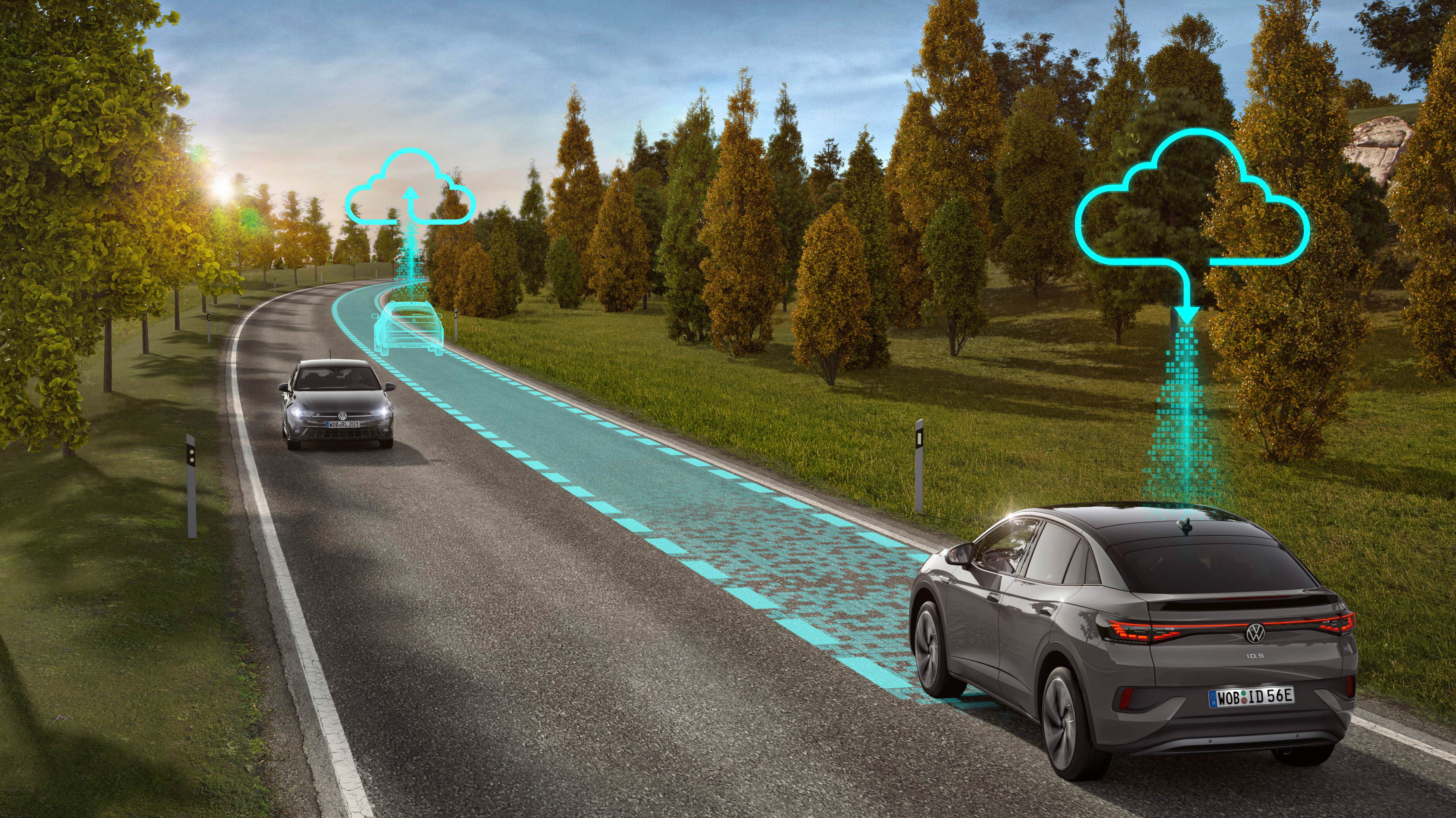 Se dados coletados de outros carros da Volkswagen estiverem disponíveis, o novo “Travel Assist” também pode dar apoio em vias onde exista apenas uma demarcação de faixa. O veículo simplesmente se alinha com uma borda da faixa para se manter na mesma como, por exemplo, em estradas vicinais sem marcação de faixa central. Os dados de enxame aumentam ainda mais a disponibilidade do “Travel Assist” e aumentam o conforto e apoio ao cliente.