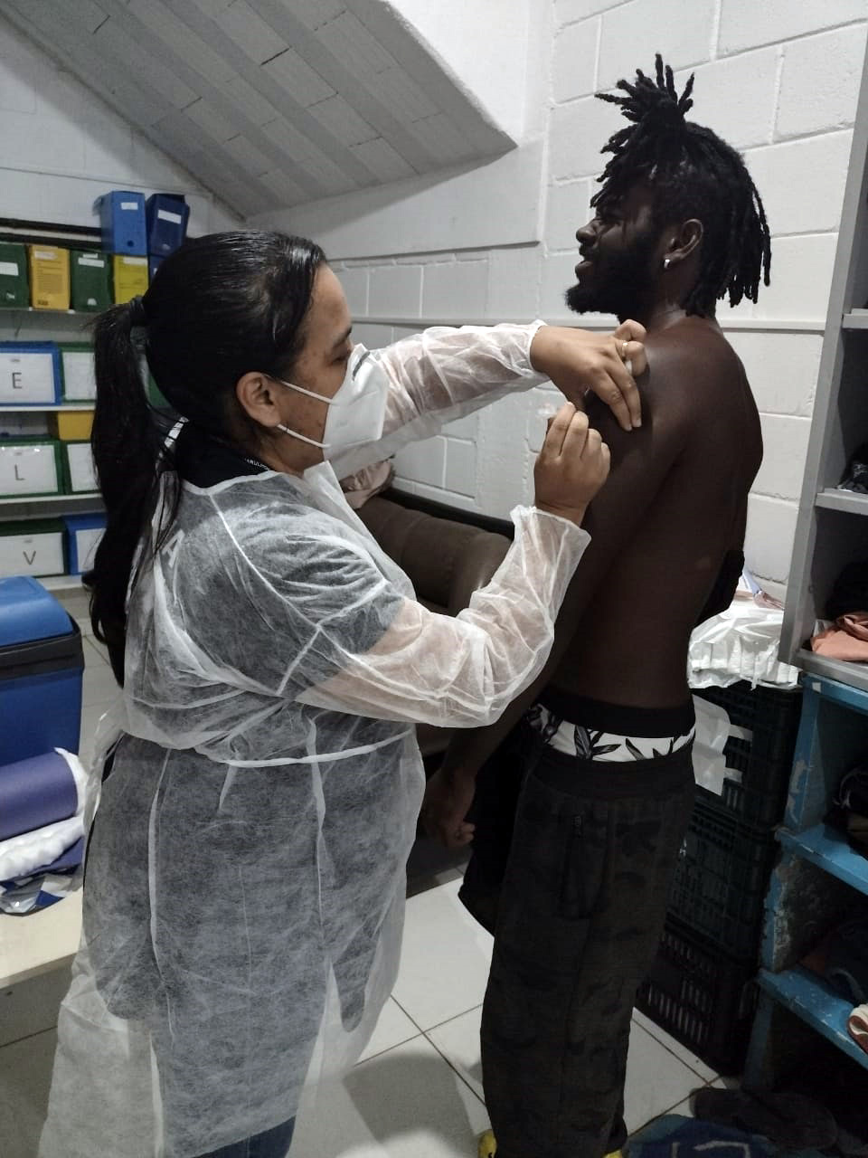 A Prefeitura de Guarulhos realizou na noite desta segunda-feira (11) uma ação de mobilização para vacinar usuários cadastrados no Serviço de Acolhimento Institucional Adulto Masculino – Parque Residencial Bambi, com o objetivo de completar o esquema vacinal contra a covid-19. A parceria entre as secretarias da Saúde e de Desenvolvimento e Assistência Social imunizou, ao todo, 16 integrantes.