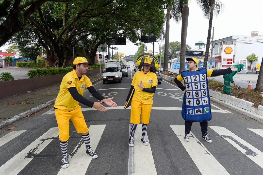 Caracterizada com roupas amarelas e adereços, a trupe de teatro chamou a atenção de quem tentava atravessar a via fora da faixa, mexendo no celular, usando fone de ouvido ou ainda durante o sinal vermelho para pedestres. A atividade integrou a agenda do movimento Maio Amarelo – Juntos Salvamos Vidas, que em Guarulhos é coordenado pela Secretaria de Transportes e Mobilidade Urbana (STMU).