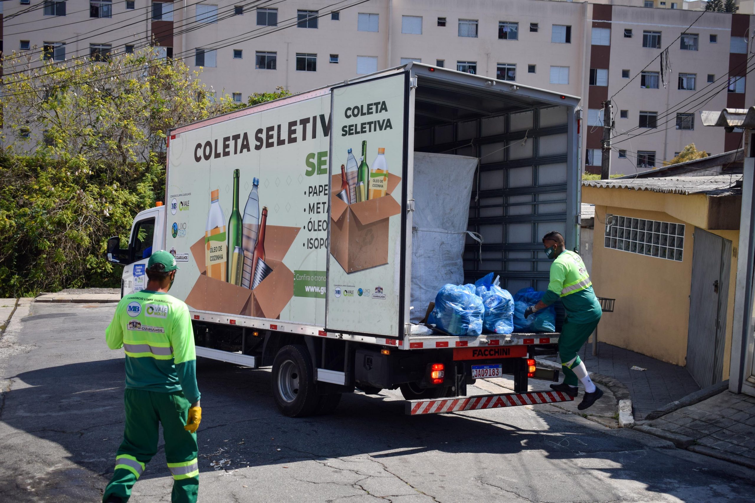 Uma dessas iniciativas é a Coleta Seletiva, que desde 9 de maio atende 100% do município. Trata-se de um serviço semanal de coleta de resíduos sólidos recicláveis, como garrafas PET e demais embalagens plásticas, vidro, isopor, metal e papelão. Confira a agenda da coleta em https://www.guarulhos.sp.gov.br/article/prefeitura-de-guarulhos-implanta-coleta-seletiva-em-100-do-municipio.