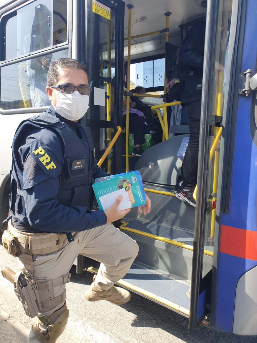 Cerca de 600 pessoas, entre pedestres e usuários do transporte público, receberam nesta terça-feira (24) orientações sobre segurança no trânsito durante uma ação lúdica e educativa promovida pela Secretaria de Transportes e Mobilidade Urbana (STMU) de Guarulhos, em parceria com a Polícia Rodoviária Federal, na passarela de acesso ao Internacional Shopping e no ponto de ônibus situado na altura do km 225 da rodovia Presidente Dutra, sentido Rio-São Paulo. A iniciativa integrou a agenda do movimento Maio Amarelo – Juntos Salvamos Vidas.