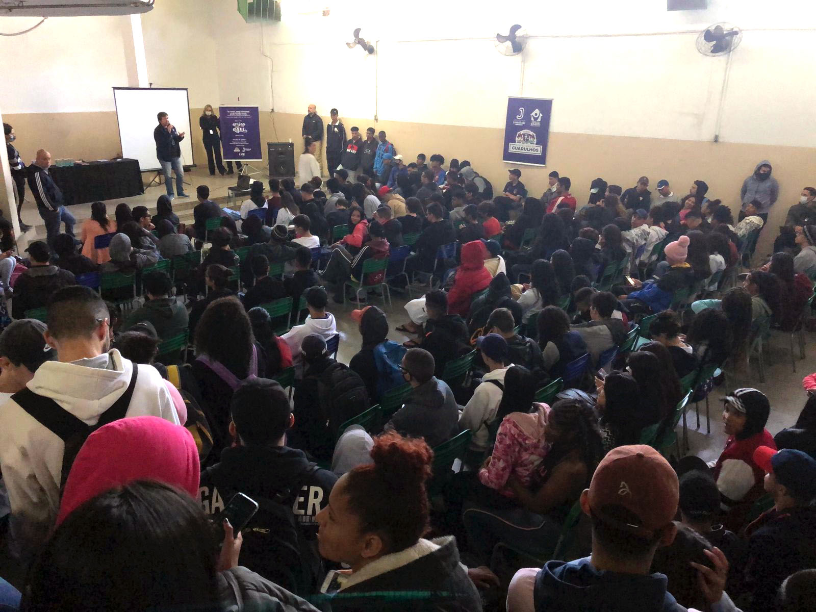 A Prefeitura de Guarulhos promoveu nesta quarta-feira (25) mais uma edição do programa Casa do Jovem (CJ) na Escola para 225 alunos da E.E. Professor Pedro Morceli, no Jardim Angélica. A iniciativa da Subsecretaria da Juventude, integrante da Secretaria de Direitos Humanos, visa a levar palestras, orientação e serviços para os adolescentes nas escolas estaduais.