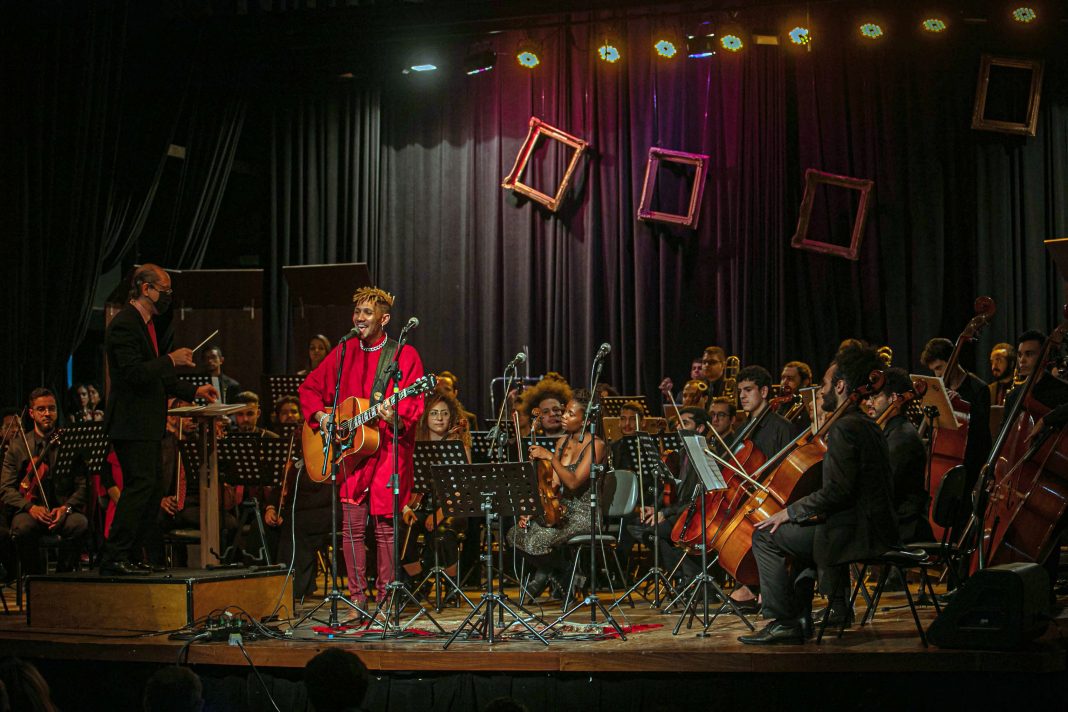 Casa cheia, música popular e sonoridades cheias de energia marcaram o espetáculo da Orquestra Jovem que aconteceu no último domingo (29) no Teatro Padre Bento. No palco as guarulhenses do grupo vocal As Despejadas e o músico Victor Cali realizaram o sonho de ter suas composições executadas e amplificadas em concerto da temporada 2022 das orquestras de Guarulhos.
