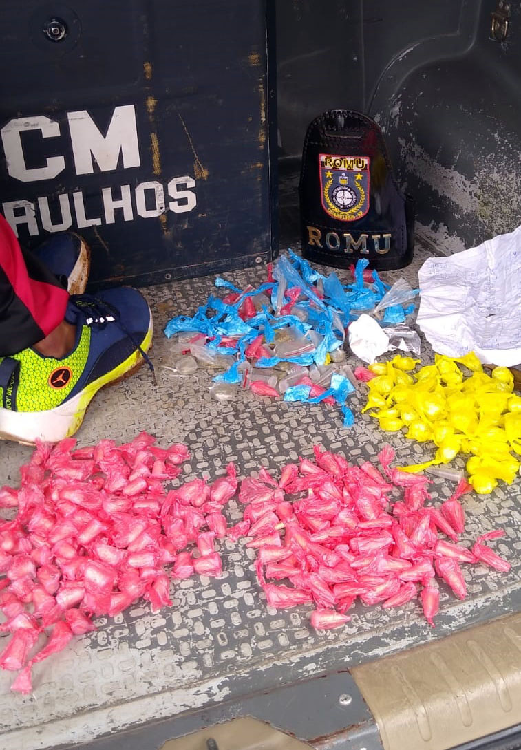 Com cada um deles foram encontradas notas de dinheiro e substâncias, que posteriormente foram identificadas em perícia como 184 embalagens contendo crack, 90 com cocaína e outras 60 com maconha, todas prontas para comercialização, além de R$ 142 em dinheiro.