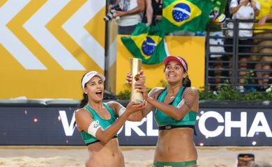 As brasileiras Duda e Ana Patrícia conquistaram, neste domingo (19), o título do Mundial de vôlei de praia ao derrotarem as canadenses Bukovec e Brandie por 2 sets a 0 (parciais de 21/17 e 21/1), em Roma (Itália).