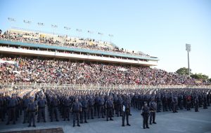 A Polícia Militar formou, na tarde desta quinta-feira (23), 1.412 soldados de 2ª classe. Os novos profissionais foram selecionados por meio de concurso público e passaram por um ano de treinamento na Escola Superior de Soldados. O evento aconteceu no Polo Cultural “Grande Otelo”, no sambódromo do Anhembi, na zona Norte da capital.