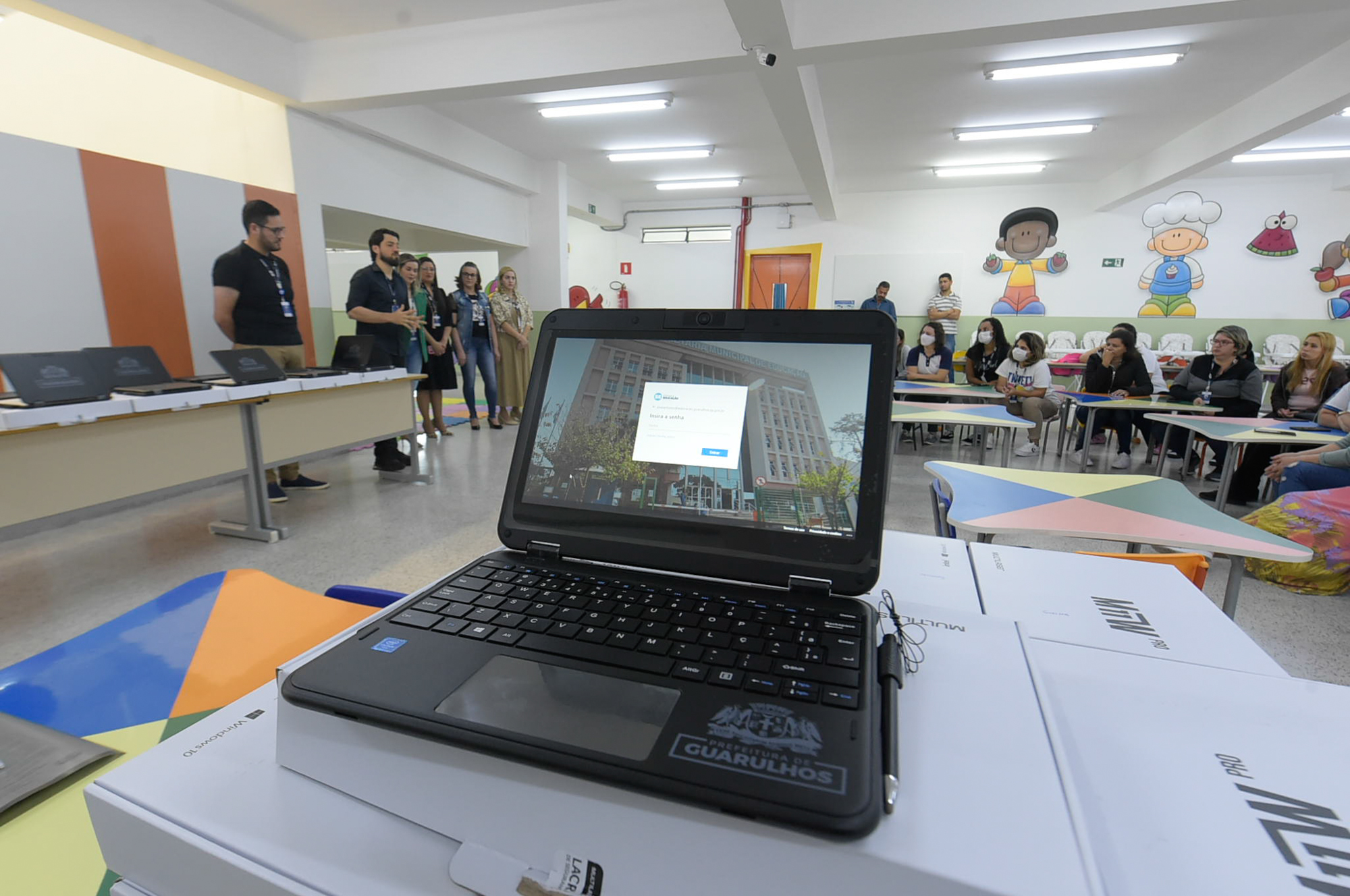 Na tarde desta segunda-feira (4) a Prefeitura de Guarulhos deu início à entrega de 17 mil netbooks para professores e gestores da rede municipal. Desse total, 11.200 serão utilizados no Programa de Inclusão Digital (Plug) para os estudantes das escolas municipais. O prefeito Guti esteve na EPG Milton Almeida dos Santos, no Jardim Maria de Lourdes, para realizar a primeira entrega dos equipamentos aos professores, ferramentas que vão aprimorar as práticas pedagógicas e contribuir na aprendizagem dos alunos da rede pública.