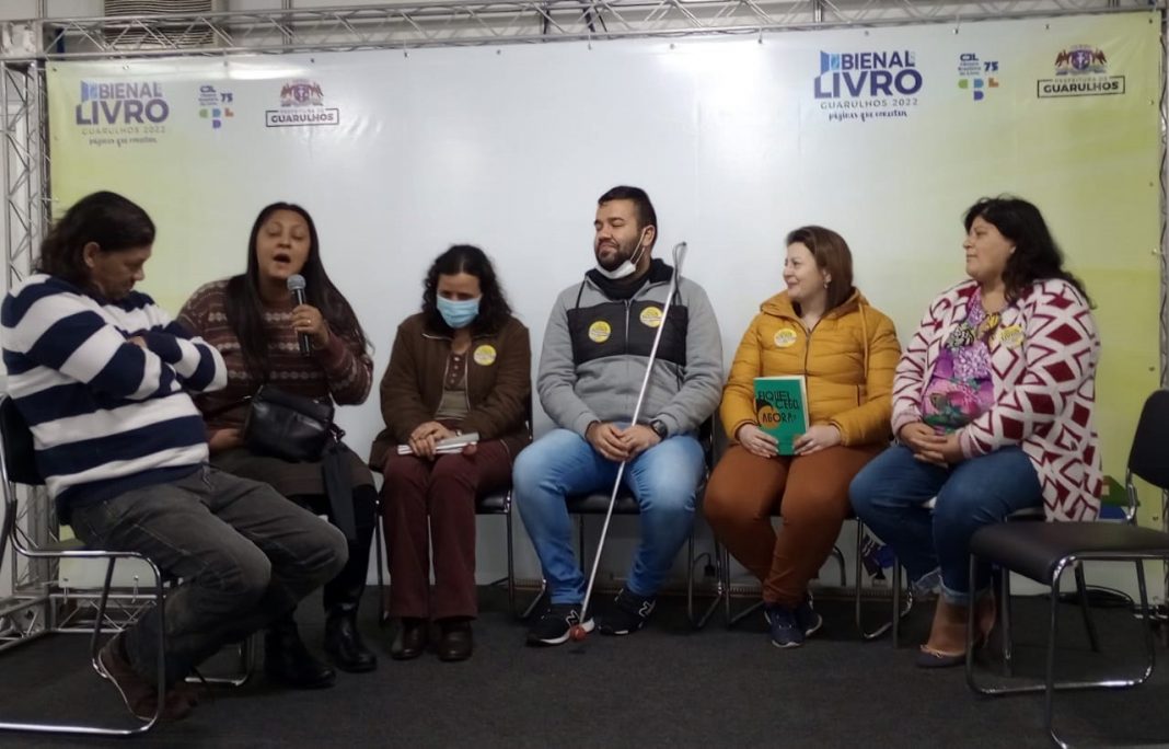 Os alunos com deficiência visual do Projeto Práticas Educativas para Inclusão Social (Peis), da Prefeitura de Guarulhos, participaram nesta quarta-feira (10) da 2ª Bienal do Livro de Guarulhos com a leitura do último capítulo do livro Fiquei Cego, e Agora?, da autora Lilian Merege Biglia, para uma plateia de aproximadamente 80 pessoas.
