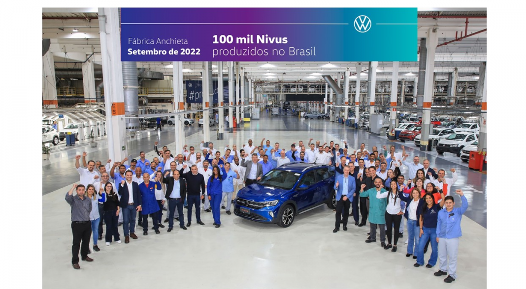 A Volkswagen do Brasil celebra 100 mil unidades produzidas em São Bernardo do Campo/SP, do VW Nivus: o primeiro modelo totalmente desenvolvido na América Latina. Membros do Comitê Executivo da empresa e os colaboradores da área produtiva da fábrica Anchieta se reuniram para celebrar este marco histórico.