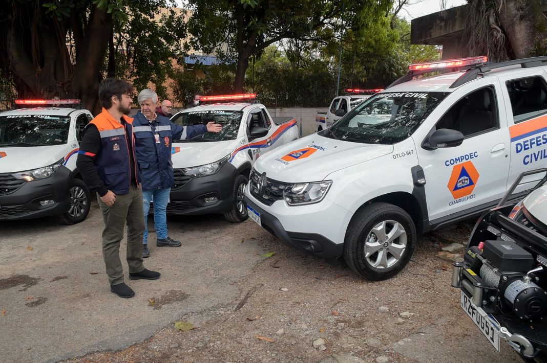 A Coordenadoria de Proteção e Defesa Civil (Compdec) de Guarulhos aumentou sua frota de viaturas com o recebimento de quatro novas picapes, sendo duas equipadas com guincho, além de uma SUV, em sua sede no Jardim Santa Francisca nesta segunda-feira (5). Com a temporada de chuvas de verão aproximando-se, os veículos serão utilizados em vistorias por toda a cidade e nos atendimentos a chamados referentes a riscos de desastres naturais ou estruturais.