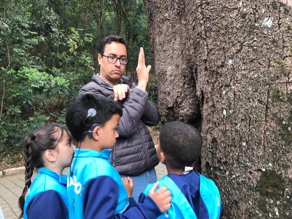 Nesta segunda-feira (12) o Centro de Educação Ambiental do Bosque Maia realizou uma ação especial para crianças com deficiência auditiva alunas da sala bilíngue da Escola da Prefeitura de Guarulhos (EPG) Crispiniano Soares.