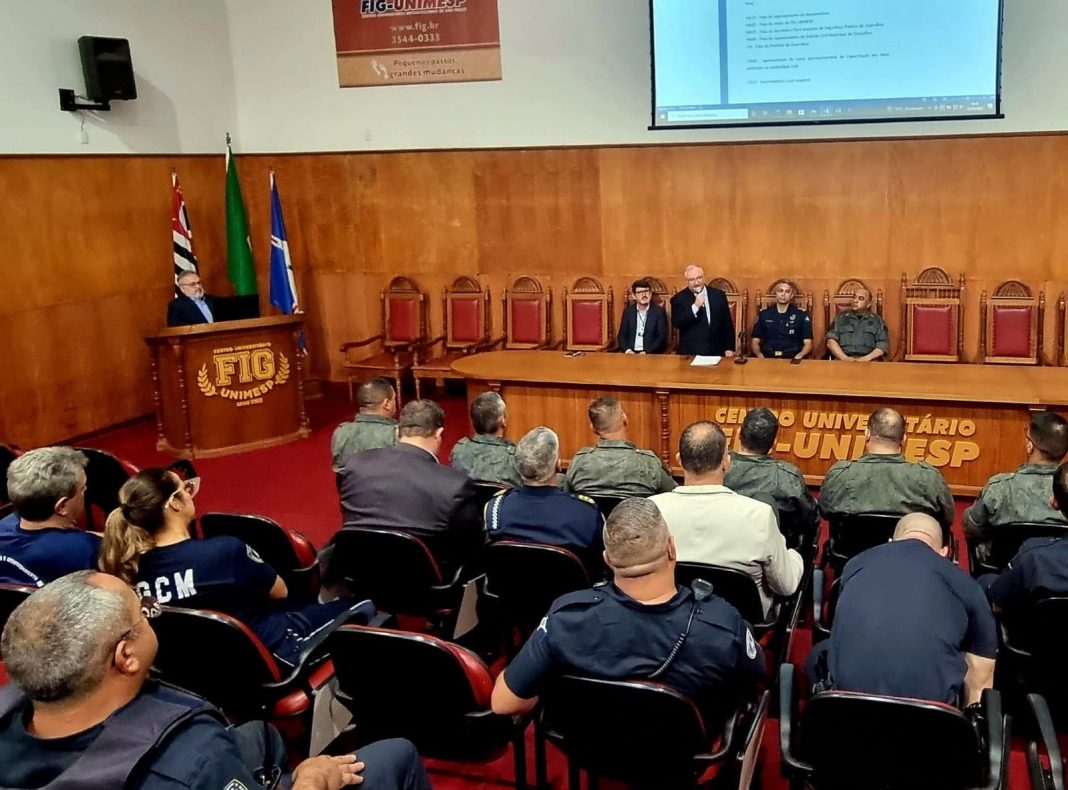 Setenta guardas civis municipais de Guarulhos receberam nesta sexta-feira (14) bolsas para o curso de extensão de Meio Ambiente do Centro Universitário FIG/Unimesp, em uma celebração no campus da Vila Rosália. Em 180 horas de aulas, os agentes vão aprofundar-se sobre legislação e licenciamento ambiental, drenagem urbana, gestão de recursos ambientais e hídricos, dentre outras disciplinas voltadas à sustentabilidade.