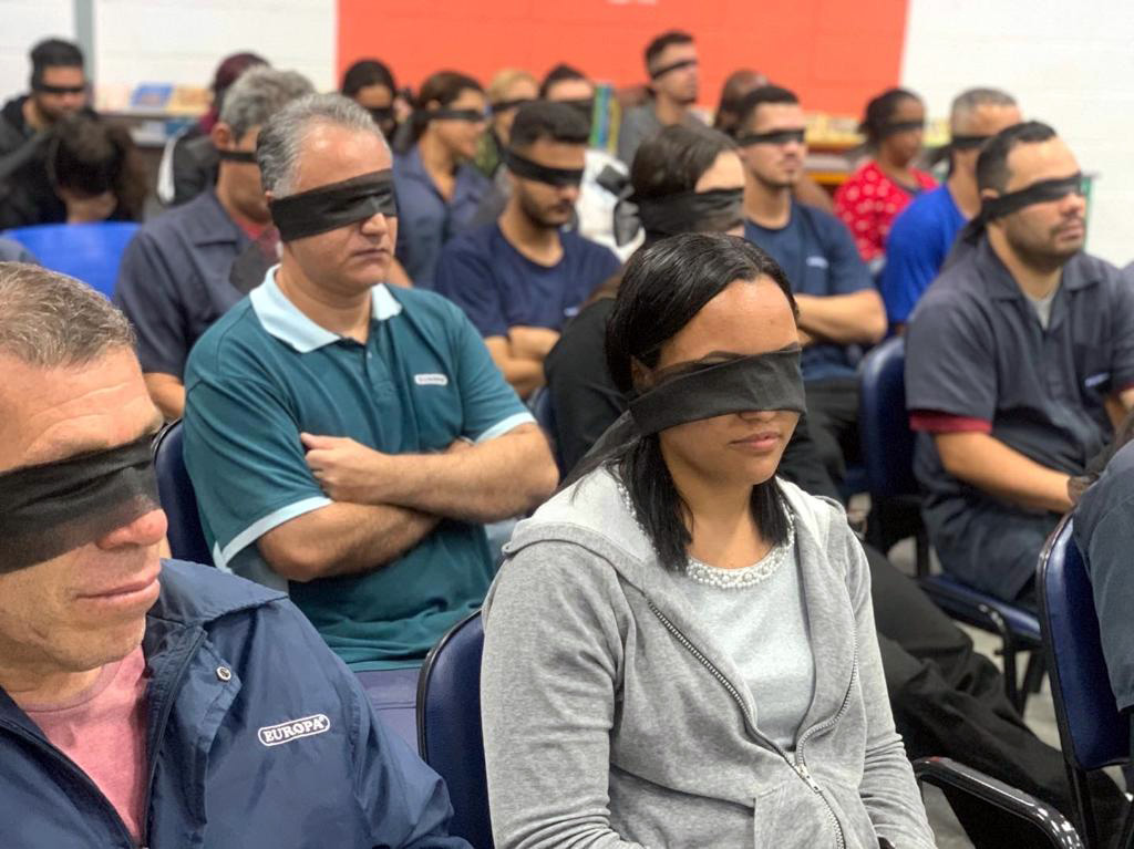 O evento contou também com uma dinâmica de acolhimento na qual os colaboradores da empresa ficaram de olhos vendados e também com intermediação em Libras feita pela servidora da SAI, Miriam R. da Silva.