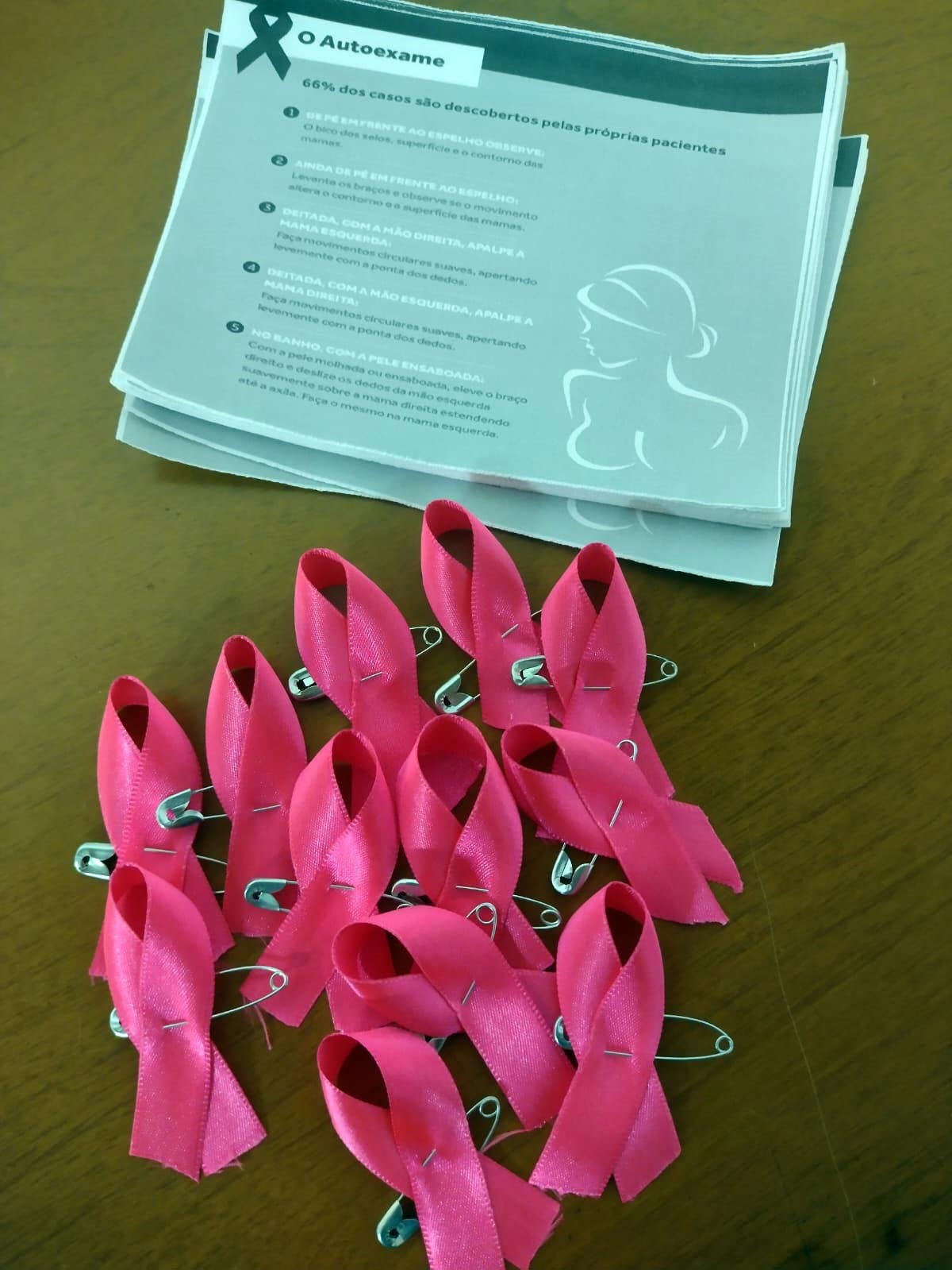 Já nas Casas e Espaços da Mulher Clara Maria ocorreram atividades de orientação sobre o câncer de mama com a entrega de folheto explicativo sobre o autoexame e de laços rosa.