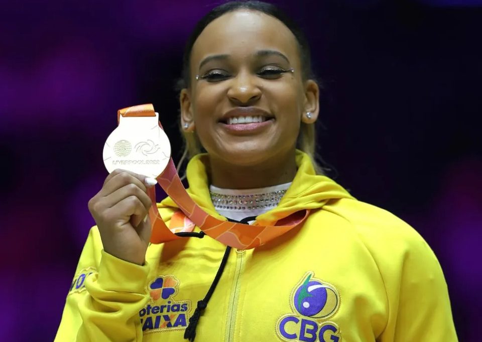 Rebeca Andrade fez história mais uma vez. Nesta quinta-feira, a ginasta de 23 anos conquistou o ouro inédito para o Brasil no individual geral do Mundial de ginástica artística, disputado em Liverpool, na Inglaterra. A guarulhense se tornou a primeira brasileira campeã mundial da prova mais tradicional da modalidade. Com o resultado, Rebeca é a nova número 1 do mundo.
