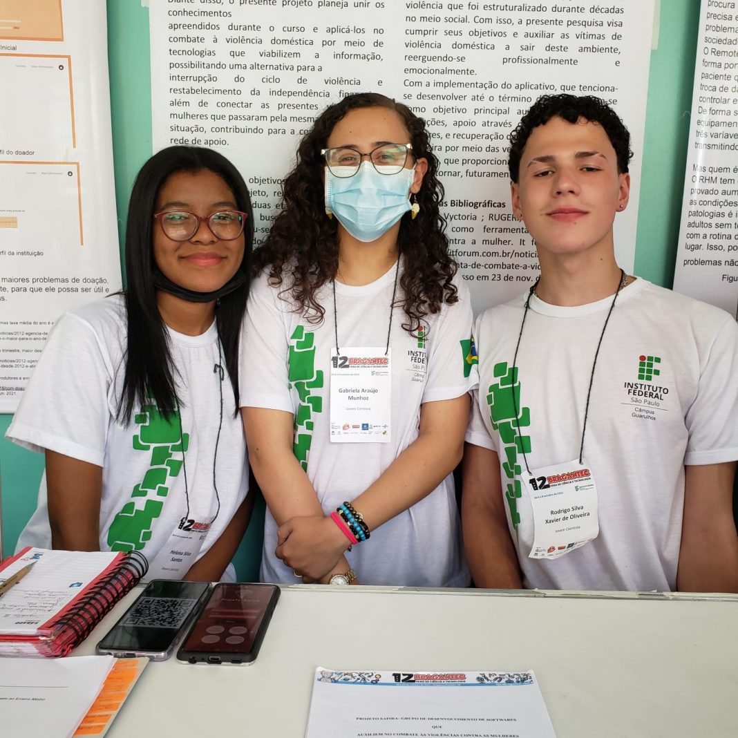 O projeto dos alunos do Instituto Federal de São Paulo – Campus Guarulhos chegou à final da Feira Brasileira de Ciências e Engenharia (Febrace) 2023, após competirem com cerca de outras 500 equipes. Eles foram selecionados para o evento nacional após a participação na Feira de Ciências e Engenharia de Guarulhos (Feceg), na qual ficaram em segundo lugar com o projeto Safira: Grupo de Desenvolvimento de Softwares que Auxiliem no Combate às Violências contra as Mulheres, o mesmo que está sendo apresentado agora nacionalmente.