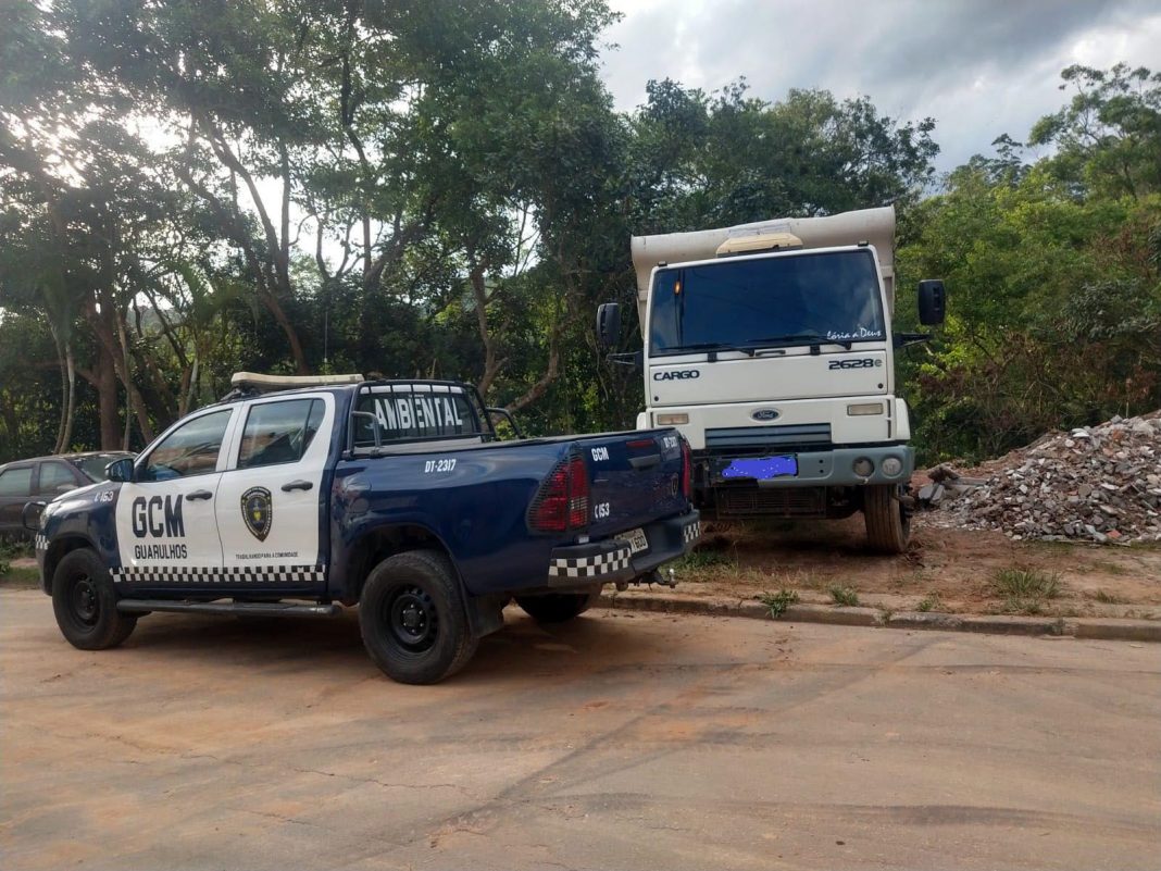 O patrulhamento ambiental da Guarda Civil Municipal (GCM) de Guarulhos flagrou no sábado (4) o momento em que um caminhão Ford Cargo causava a poluição de uma área de mata no Jardim Monte Alto com o despejo de cerca de sete mil litros de entulhos em um pequeno rio. A sujeira em cursos d’água pode causar alagamentos, contaminar o lençol freático e gerar problemas de saúde pública.