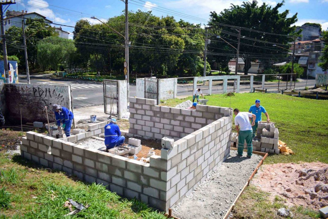 Servidores da Secretaria de Serviços Públicos trabalham na construção da edificação de apoio, no cercamento com alambrado e na reforma para a adequação do muro, do piso externo e da entrada do local. Para garantir a sustentabilidade da obra parte dos materiais utilizados, como cerâmicas, portas e janelas, são provenientes dos demais ecopontos já em funcionamento.
