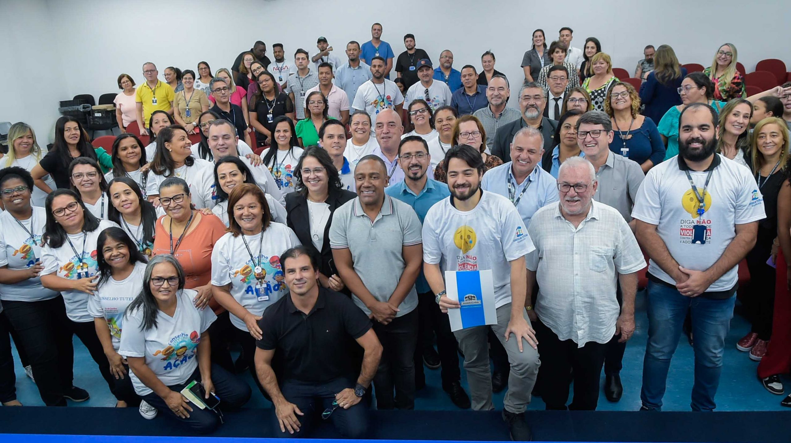 “É um dia em que a gente faz história e a história é feita por guerreiros e guerreiras que estão aqui na minha frente”, afirmou o prefeito Guti, referindo-se aos atuais conselheiros. “É necessária uma rede trabalhando em conjunto para que a gente consiga acolher da melhor forma possível as crianças que estão em vulnerabilidade. Muitas vezes problemas invisíveis tornam-se visíveis pelo trabalho de vocês, que conhecem o dia a dia dessas famílias”, disse o chefe do Executivo. Ele participou do ato de assinatura do lado do vice-prefeito, Professor Jesus, do secretário-adjunto de Desenvolvimento e Assistência Social, Alex Cardoso, e do presidente do Conselho Municipal de Direitos da Criança e do Adolescente, Everaldo Barboza.