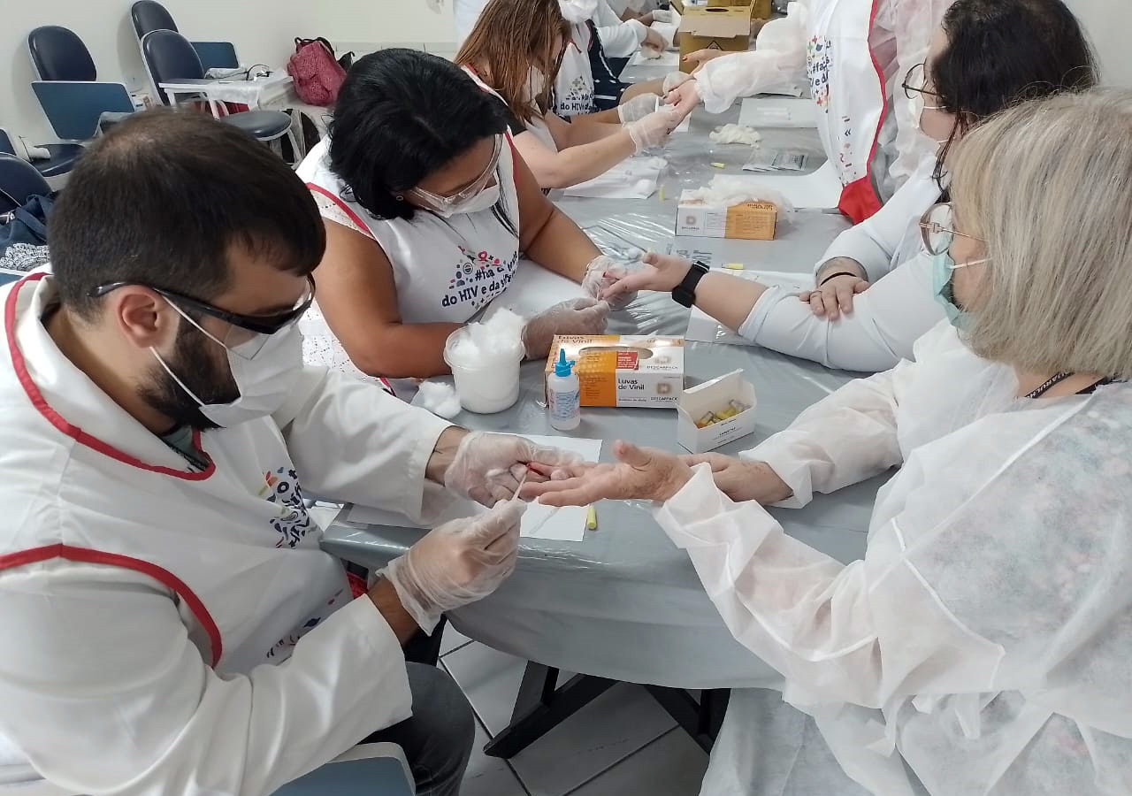 Já no dia 9 foi realizada outra capacitação, desta vez voltada à execução de testes rápidos para HIV, sífilis e hepatites B e C. Quinze profissionais da atenção básica, urgência e emergência, de serviços especializados e da vigilância em saúde participaram do treinamento, que focou na ampliação dos testes nas UBS, no Centro de Testagem e Aconselhamento (CTA), no Serviço de Assistência Especializada (SAE) Carlos Cruz e nas unidades de urgência e emergência. O objetivo principal é promover o diagnóstico precoce dessas doenças, permitindo a vinculação dos casos reagentes ao tratamento adequado.