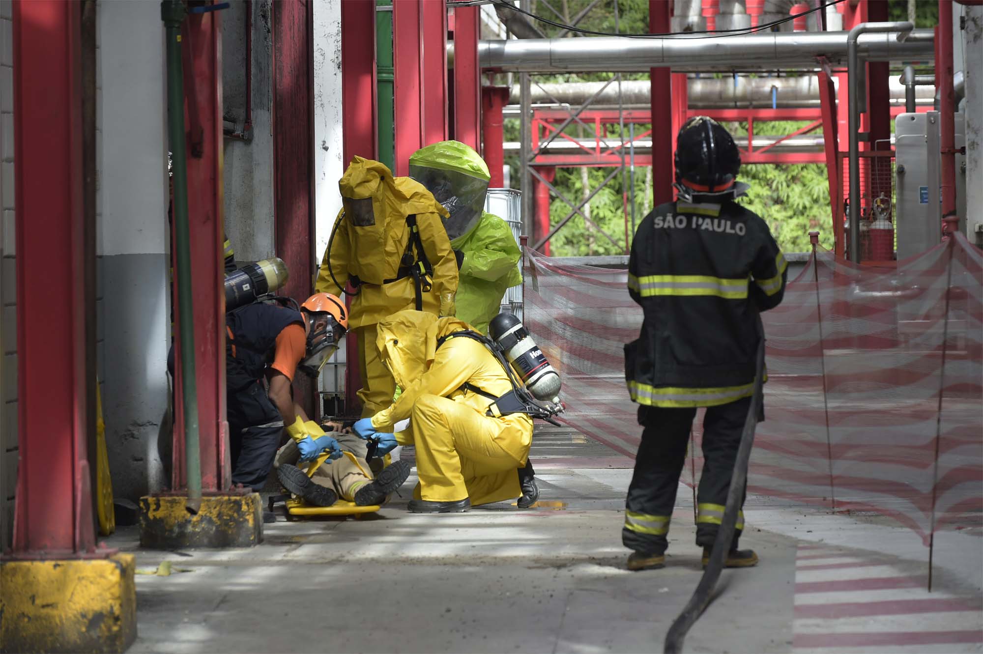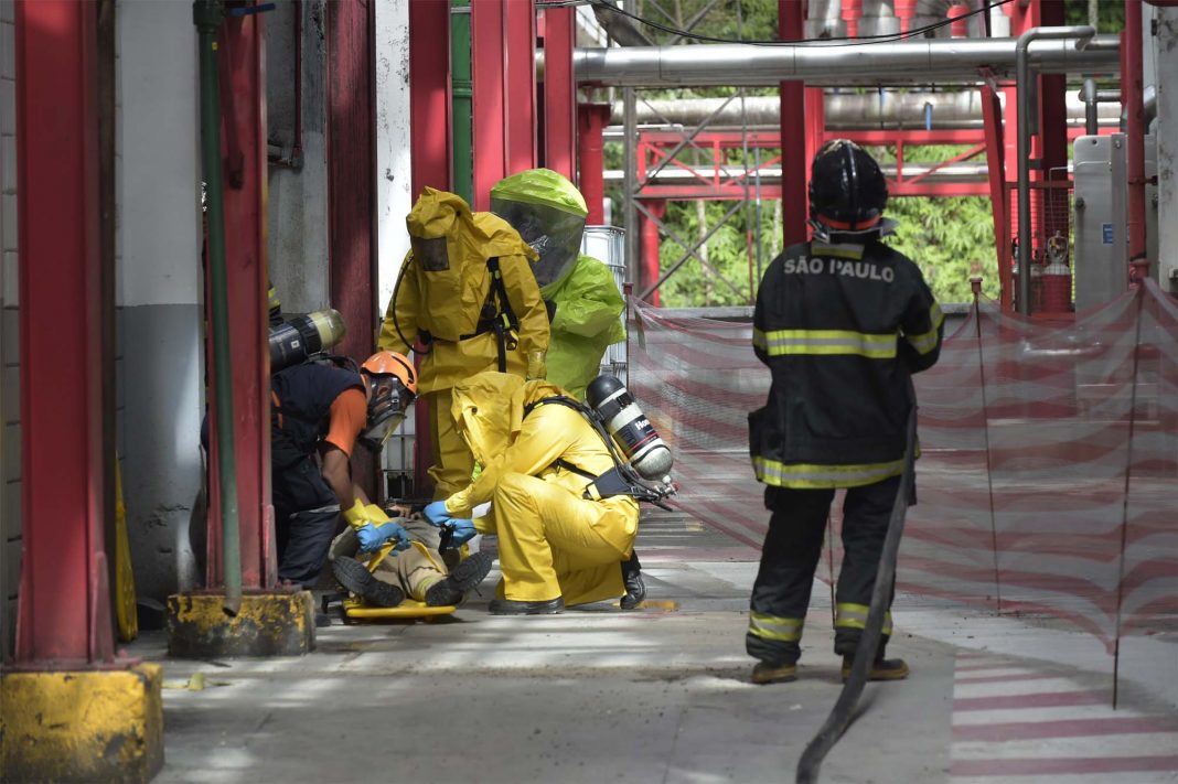 Acionada pela empresa, a brigada percorreu o bairro em viaturas e caminhões com sirenes ligadas até o pátio, onde mais de 50 agentes vestidos com equipamentos de proteção individual e respiratória dividiram-se entre o controle do gás amoníaco, simulado por fumaça não tóxica, e o resgate de vítimas. O abatimento do vapor tóxico foi realizado com mangueiras com água pulverizada.