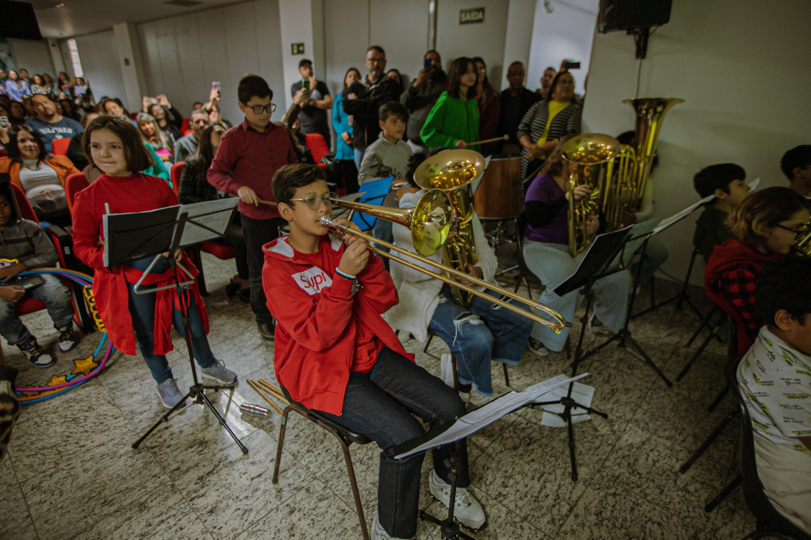 Durante o encontro os alunos da banda infantil do Cemear tocaram a trilha sonora do curta-metragem de animação Kiwi, que conta a história de um pássaro que ultrapassa seus limites para alcançar o sonho de voar. Já os estudantes surdos da classe bilíngue da EPG Crispiniano Soares encenaram a peça teatral A Menina da Cabeça Quadrada, que incentiva brincadeiras tradicionais para as crianças.