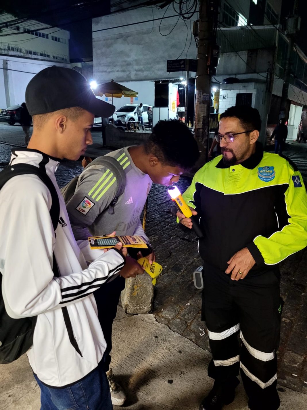Mais de 300 pessoas, em sua maioria jovens, foram abordadas por agentes e educadores da Secretaria de Transportes e Mobilidade Urbana (STMU) de Guarulhos na última sexta-feira (19) em bares localizados na região central, em mais uma ação educativa da operação Lei Seca – Tolerância Zero. A atividade, que integra o calendário do Maio Amarelo, teve por objetivo orientar sobre a importância de não conduzir veículos após a ingestão de bebida alcoólica.