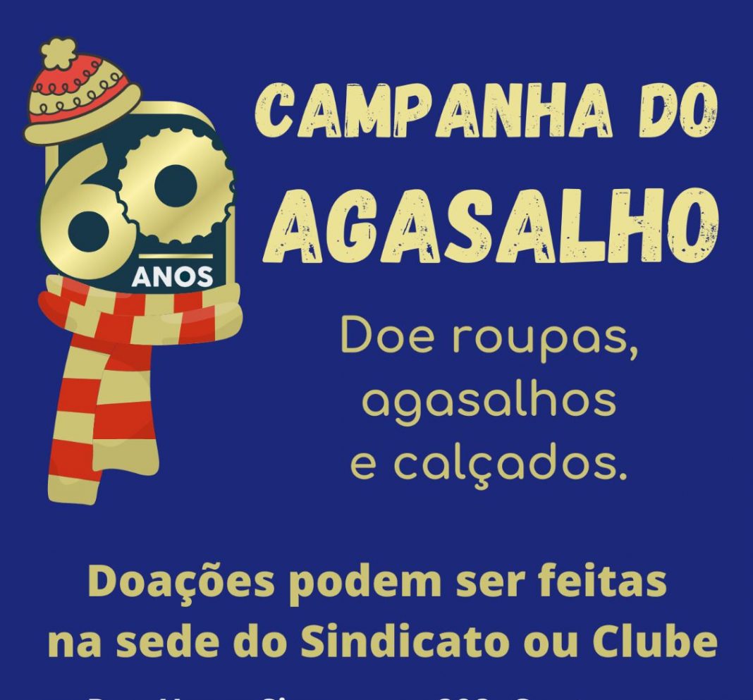 esta sexta (26), o Sindicato dos Metalúrgicos de Guarulhos e Região começa a Campanha do Agasalho 2023. A arrecadação será revertida para famílias carentes atendidas pelo Instituto Meu Futuro, no Parque Primavera. Campanha irá até 31 de julho.