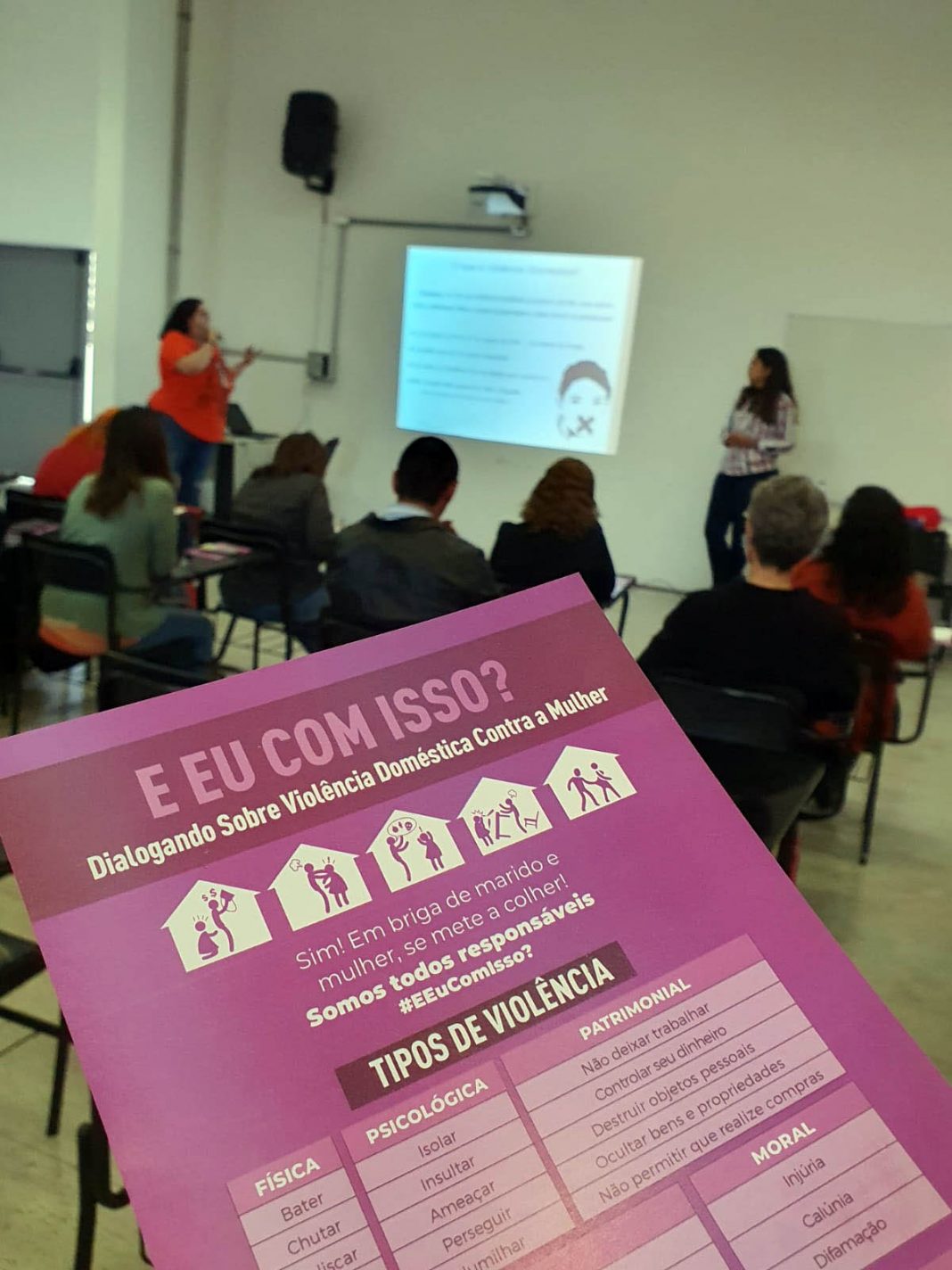 As leis Maria da Penha e do Feminicídio, tipos de violência contra a mulher, como sair de relações violentas e serviços de atendimento estiveram entre os assuntos tratados pelas funcionárias municipais. Elas também orientaram a identificar, acolher e ajudar uma pessoa que pode estar sendo vítima de violência doméstica, por exemplo, uma colega de trabalho.