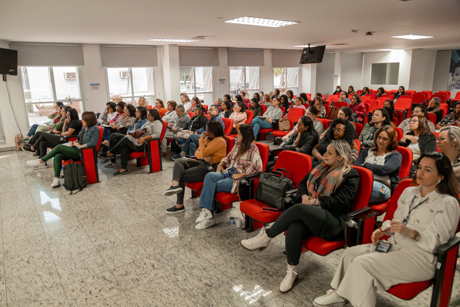 A Secretaria de Educação promoveu na manhã desta quarta-feira (28) a formação Educação da Pessoa com Surdocegueira, encontro destinado a professores da rede municipal que atuam nas classes bilíngues de surdos, no Atendimento Educacional Especializado e na Educação Especial, que fazem parte do projeto Professor Referência de Apoio à Inclusão.