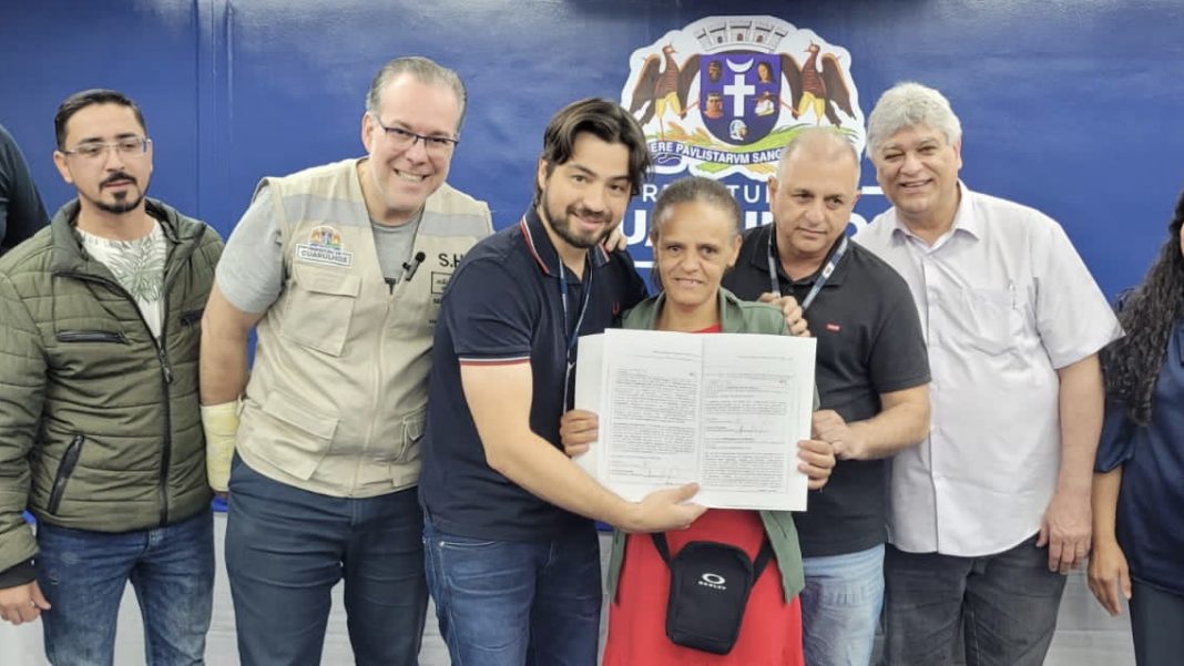 A Prefeitura de Guarulhos entregou 138 títulos de propriedade aos moradores dos Conjuntos Habitacionais de Interesse Social (CHIS) Maria Clara e Parque Santo Agostinho em cerimônia realizada no auditório do Paço Municipal no último sábado (1º). O documento foi entregue às 107 famílias do Parque Santo Agostinho, localizado no Taboão, e aos 31 moradores do Maria Clara, na região do Lavras, pelas mãos do prefeito Guti. A entrega beneficia moradores que aguardavam há mais de 30 anos pelo documento oficial de suas residências.