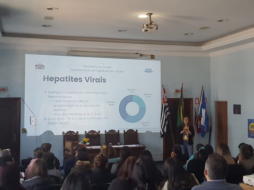 O evento contou com uma palestra de Aline Campagno, consultora e especialista da empresa biofarmacêutica Gilead, que abordou os aspectos das hepatites virais e a relevância de seu combate para a saúde pública, e de Paula Andrade Alvares, médica especialista em doenças infecciosas, que forneceu informações sobre a vigilância dessas doenças em Guarulhos, a definição de casos e o cenário epidemiológico atual.