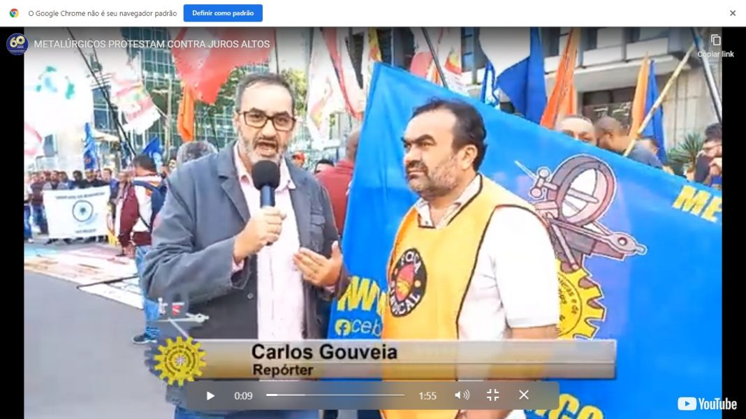 Na manhã do dia 1º de agosto, o Sindicato participou de ato contra os juros abusivos, em frente ao Banco Central, na avenida Paulista. No mesmo dia, o Copom iniciou reunião para definir novo índice da Selic, até então em 13,75%. “Juro alto não se justifica. É preciso baixar e investir em produção para gerar emprego”, afirma nosso presidente Josinaldo José de Barros (Cabeça).