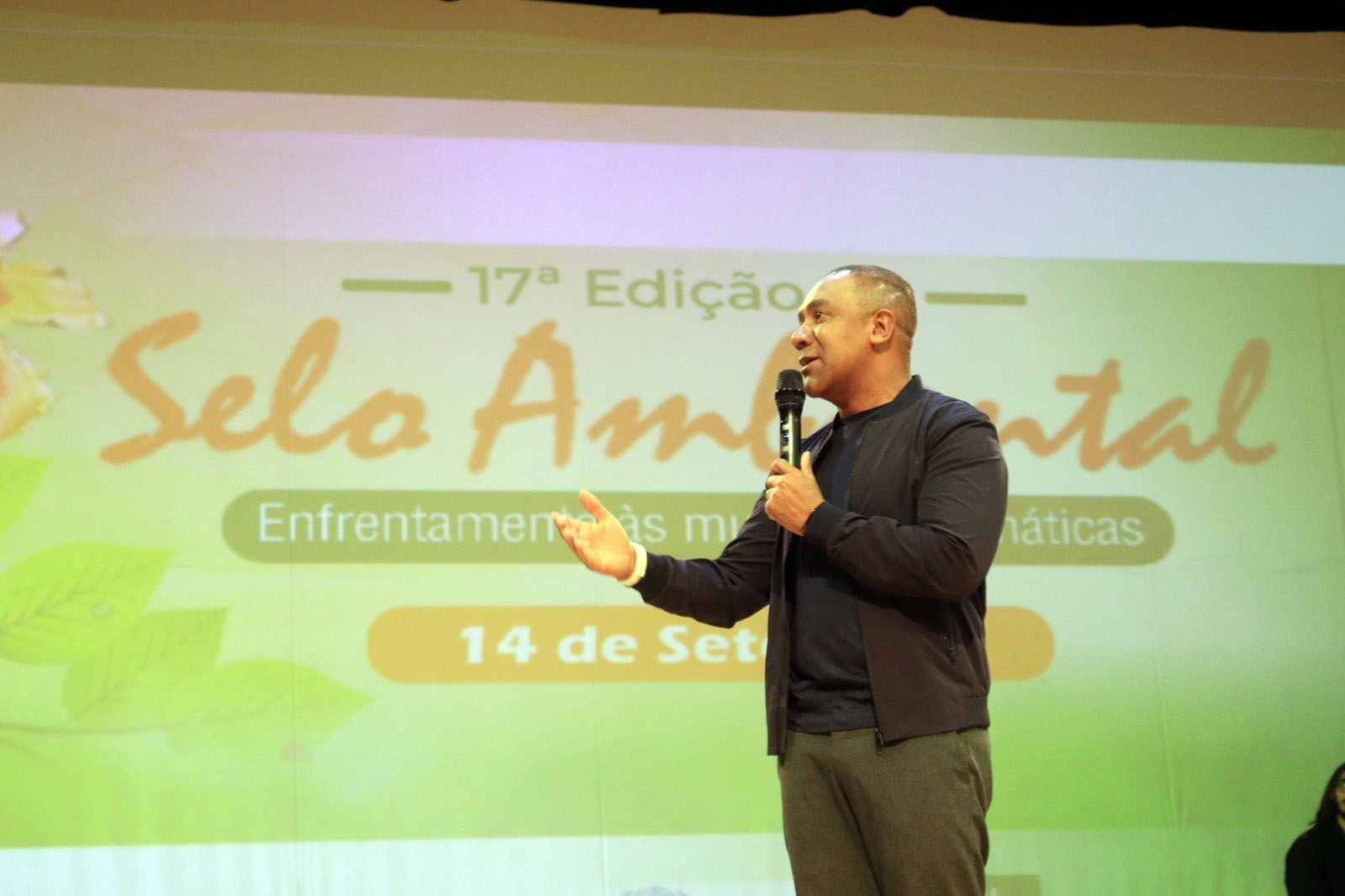Com o tema Enfrentamento às Mudanças Climáticas, a 17ª Edição do Selo Ambiental, evento que conta com apoio da Secretaria de Meio Ambiente de Guarulhos, foi realizada no Adamastor na noite desta quinta-feira (14). Foram laureados com certificado e troféus dezenas de representantes de diversos segmentos da sociedade que inscreveram suas ações e projetos relacionados ao tema para análise. Também houve sorteio de tablets.