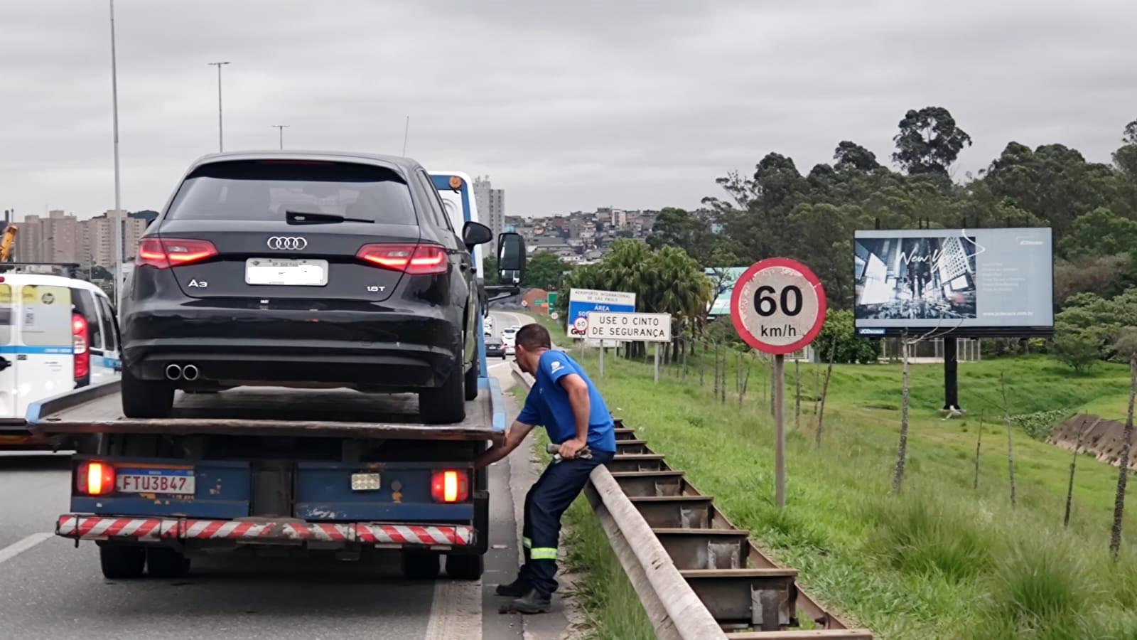 Agentes de fiscalização da Secretaria de Transportes e Mobilidade Urbana (STMU) abordaram nessa quinta-feira (19), um veículo modelo Audi A3, que fazia o desembarque de passageiros no Terminal 2 do Aeroporto Internacional de Guarulhos, em Cumbica.